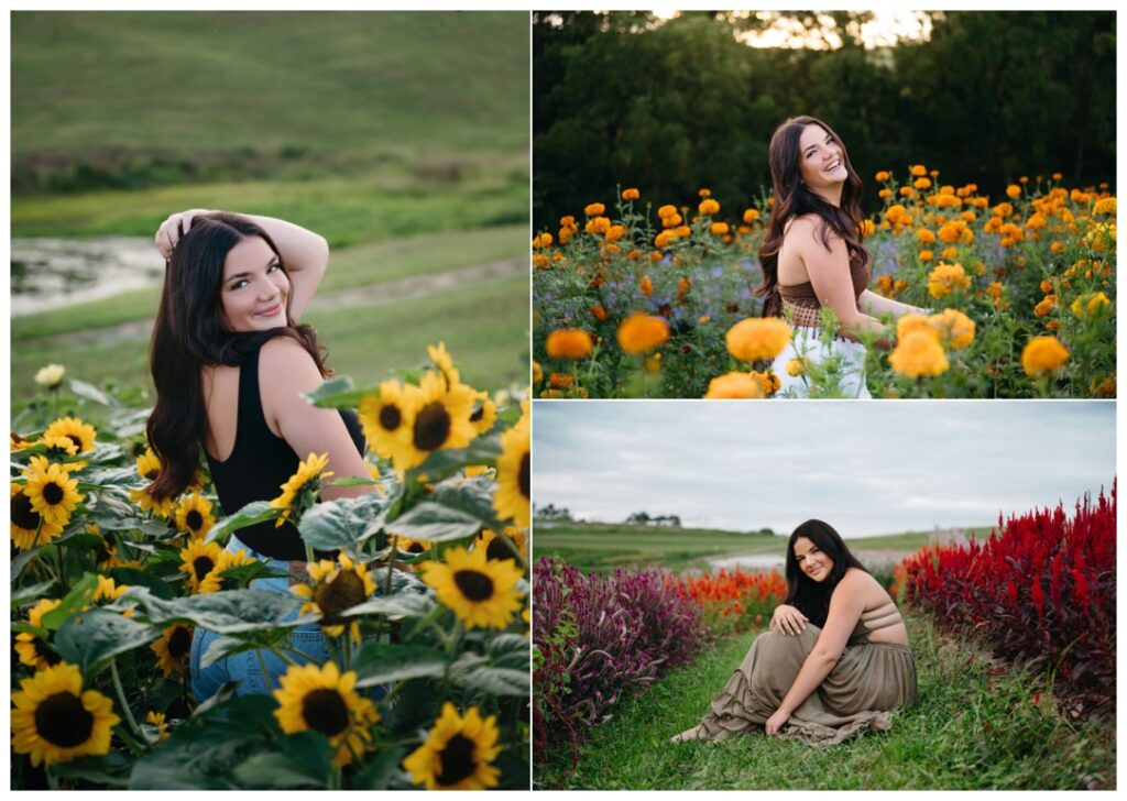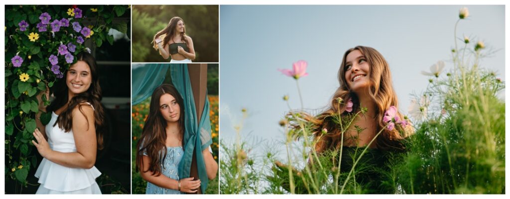 For those looking to add an extra pop of color, a beautiful flower field located about 10 minutes away is in peak bloom from mid-July to mid-August, offering a whimsical and dreamy setting for summer senior sessions.