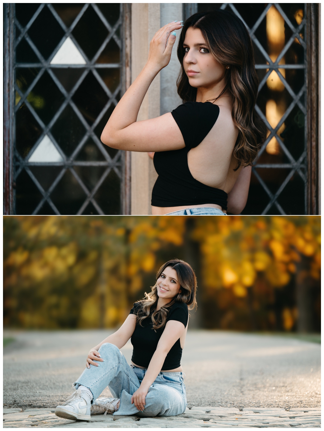 Stunning girl stands amongst a fall scene at Hartwood acres mansion