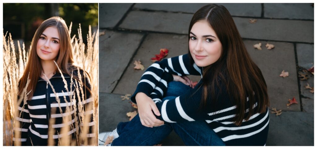 I always tell my seniors to think about variety when styling—fall gives you the chance to mix light, flowy pieces with more textured, autumn-inspired layers. And that variety can really make your gallery pop. Bonus: no sweating off your makeup like in July.