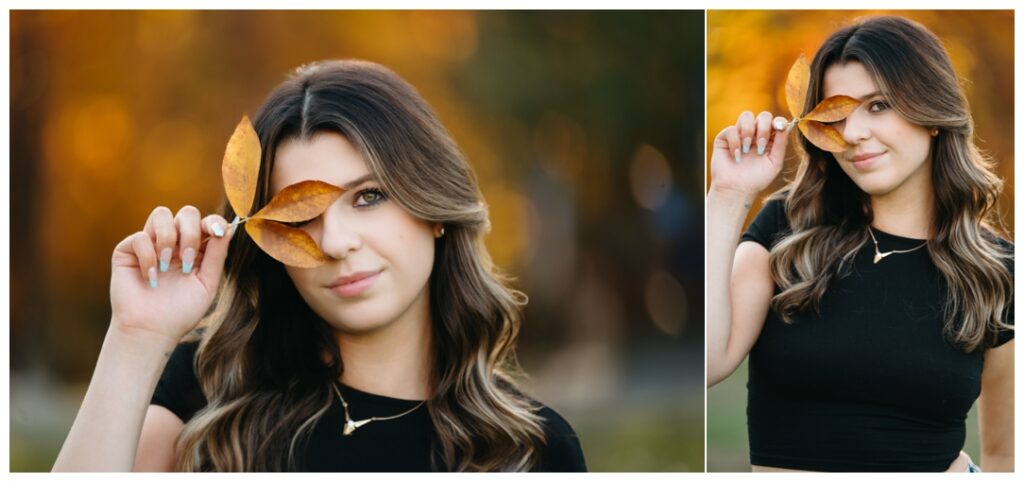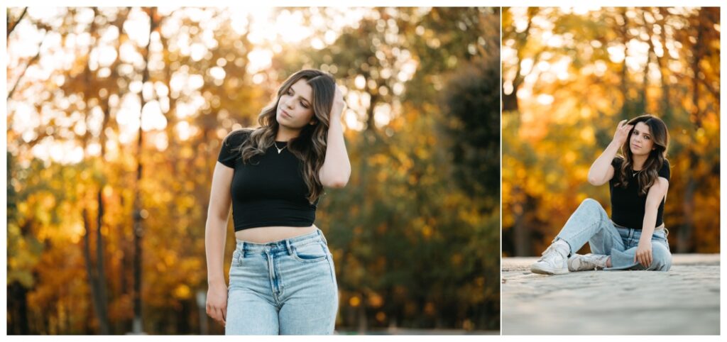 Summer might get all the attention for senior photos, but fall is truly underrated. The light is softer and more golden, especially in the evenings, which makes for the dreamiest natural lighting. Plus, many popular photo locations are less crowded once school starts again—so we’re not fighting for space like we do in peak summer. And with milder temps, you don’t have to worry about heat or humidity messing with your hair, makeup, or outfit choices.